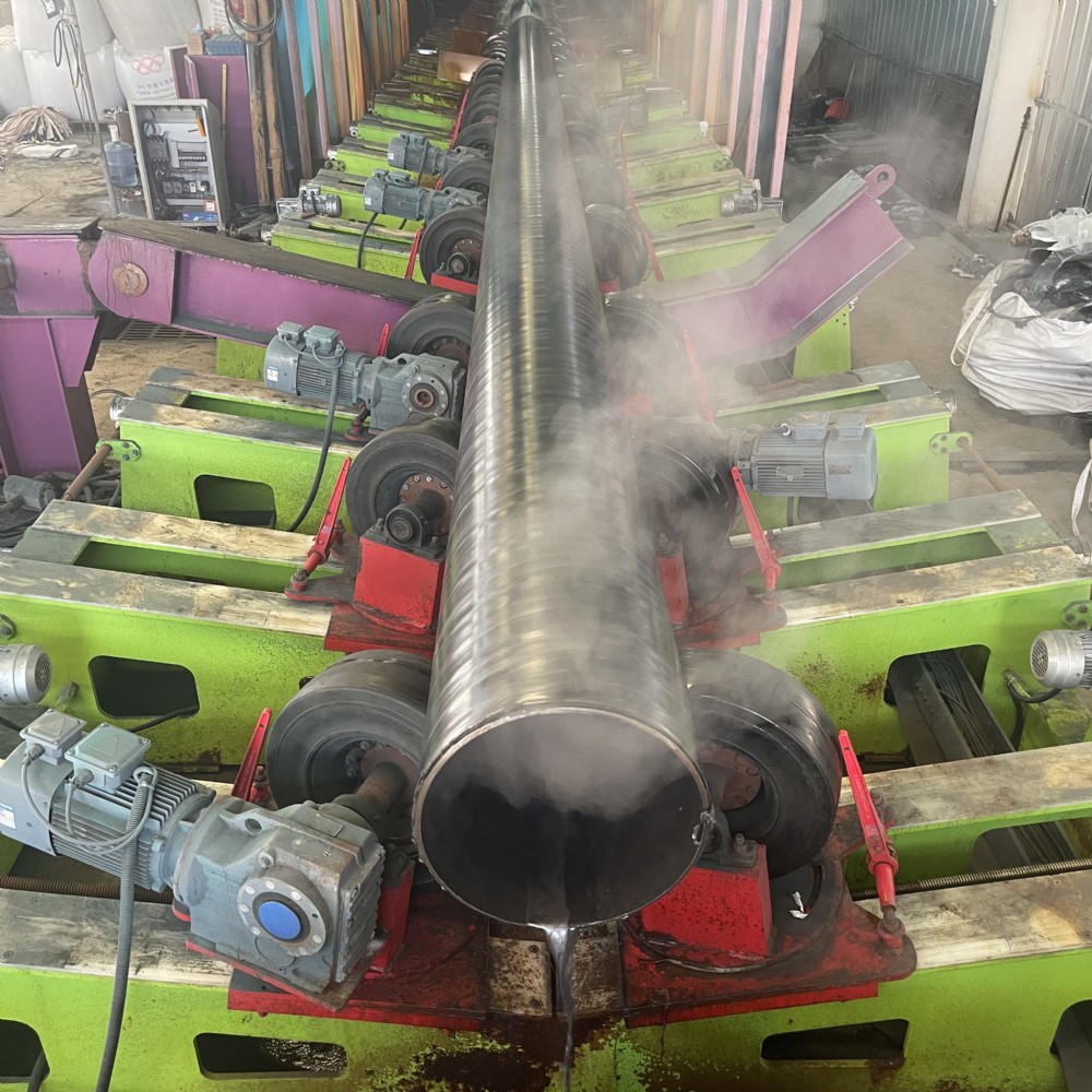 3PE防腐钢管的生产需经过十余道精密工序:钢管表面抛丸除锈→预热至约200℃→静电喷涂环氧粉末→侧向缠绕胶粘剂与聚乙烯带→水冷却→在线检测(厚度、电火花、附着力)→管端处理。其中,加热温度与涂覆速度的精准控制是关键——温度过低会导致层间结合力不足,过高则引起材料降解。国内主流生产线已实现Φ60–Φ3200mm口径的覆盖,并能根据工程需求定制厚度与涂层组合。